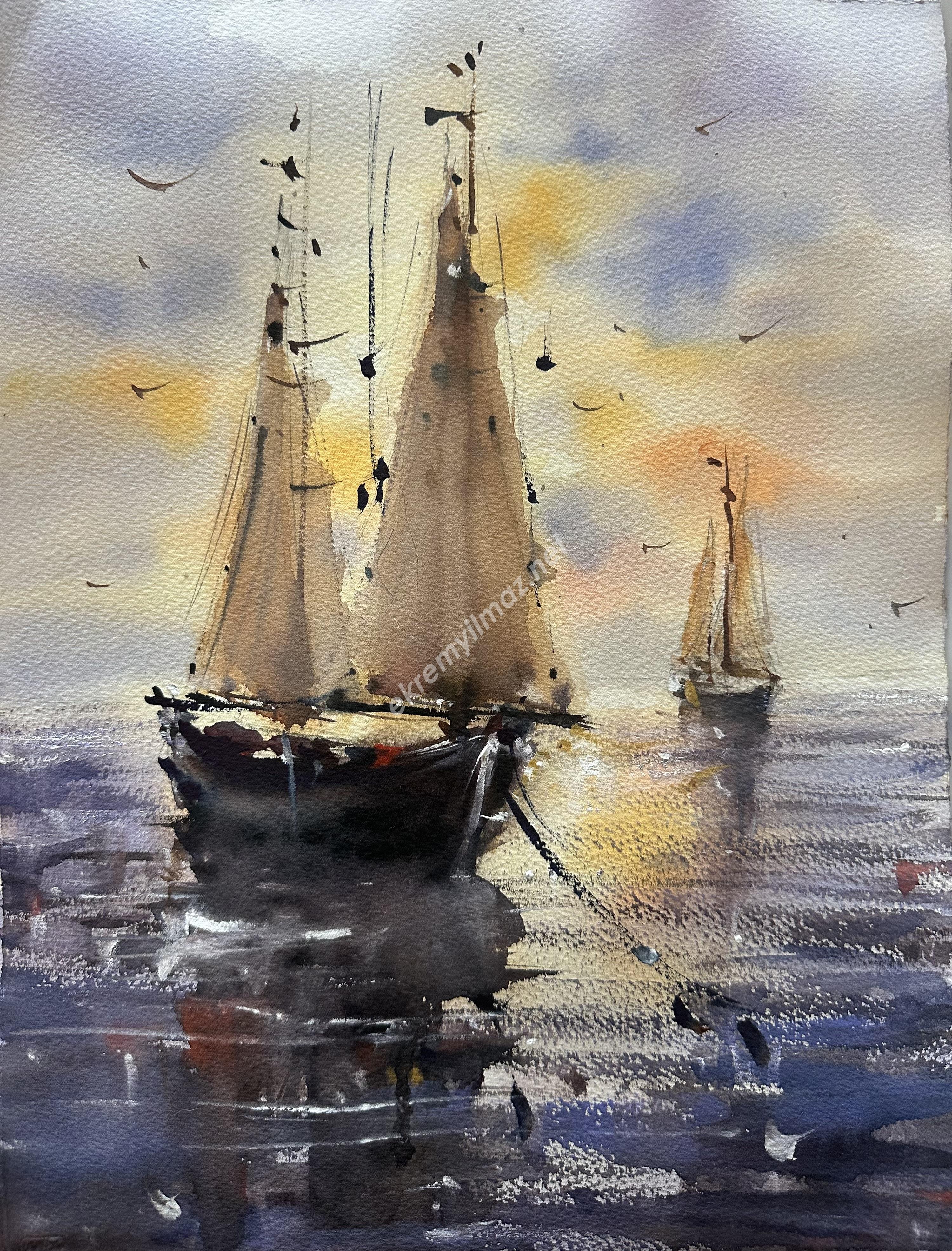 Sakin Deniz ve Gemiler, 28x38 cm