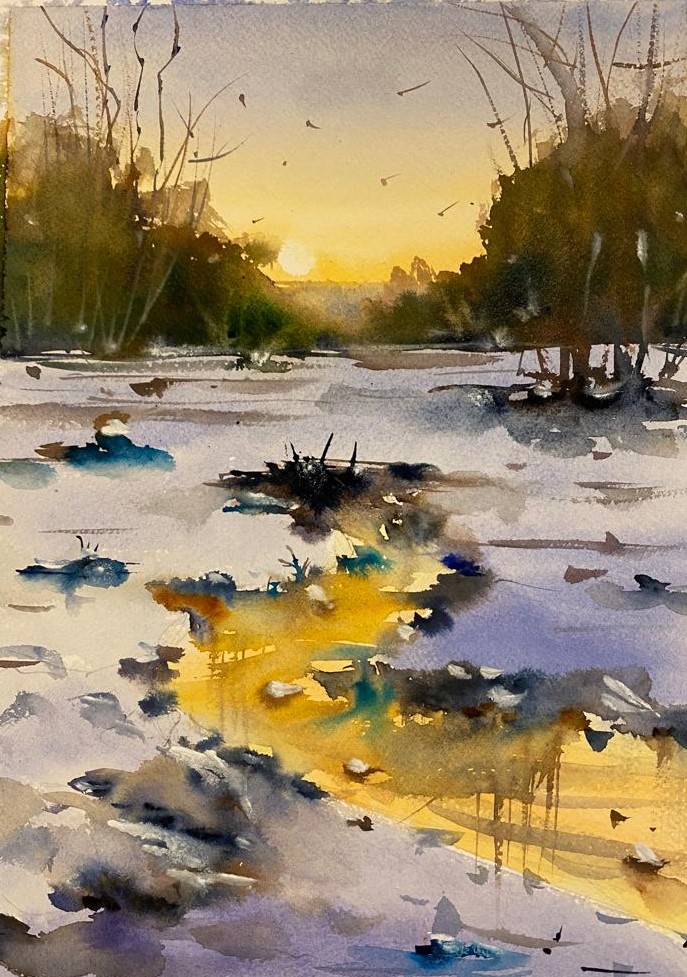 Kışın Günbatımı, 28x38 cm
